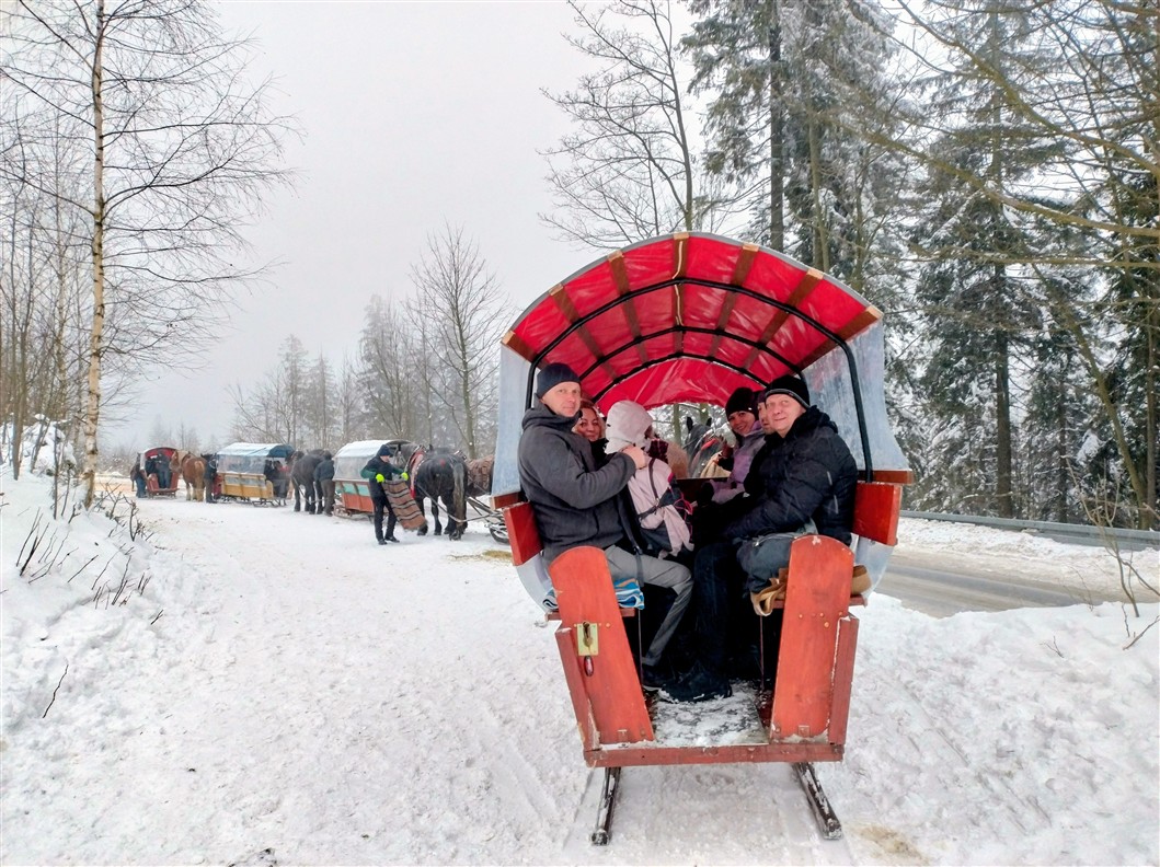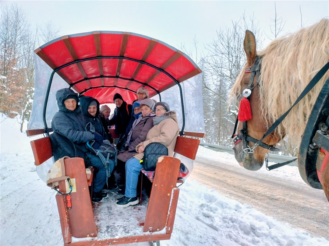 Za nami zimowa wycieczka pełna wrażeń! Odwiedziliśmy malowniczą Wisłę, gdzie zjedliśmy starodawny, regionalny obiad i wysłuchaliśmy ciekawej prelekcji górala o tradycjach i życiu w Beskidzie Śląskim. Następnie przyszedł czas na najbardziej wyczekiwany moment – kulig. Skrzypiący pod płozami śnieg, zimowe krajobrazy i rześkie powietrze sprawiły, że poczuliśmy prawdziwą magię zimy. Na zakończenie czekała na nas biesiada z kapelą góralską. To był dzień pełen radości, integracji i prawdziwego górskiego klimatu! Jednym słowem – było magicznie!