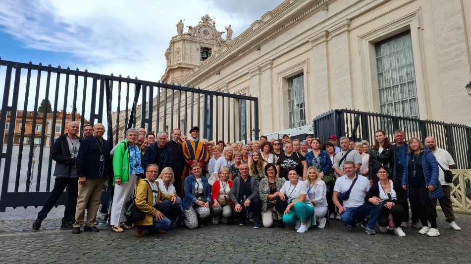 Zorganizowanie 5-dniowej wycieczki do Włoch w 2024 roku było dla nas dużą frajdą i wyzwaniem, by zadowolić uczestników przyzwyczajonych do polskiego jadłospisu :) Piękne apenińskie krajobrazy, nadmorskie plaże, magia Asyżu i Rzymu sprawiły, że długą trasę pokonaliśmy niepostrzeżenie. W Rzymie zobaczyliśmy wszystkie punkty z listy must see począwszy od Bazyliki św. Piotra po Koloseum. Całą grupę ucieszyło bliskie spotkanie Papieża Franciszka na Placu św. Piotra :) Ponadto zobaczyliśmy Bazylikę św. Franciszka a w Cervii, która słynie z pięknych i szerokich plaż, mieliśmy czas na odpoczynek nad brzegami Morza Adriatyckiego :)
